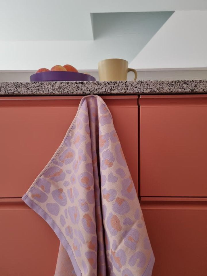 These tea towels will give your kitchen an instant upgrade! The towels have a leopard design in the color combination lilac / peach. The towel is made of 100 percent double jacquard woven cotton, a high-quality fabric with woven motifs, which is colorfast and durable. As a result, the absorption capacity is very high and they are equally beautiful on both sides. So these tea towels are not only practical and durable, but also super stylish.