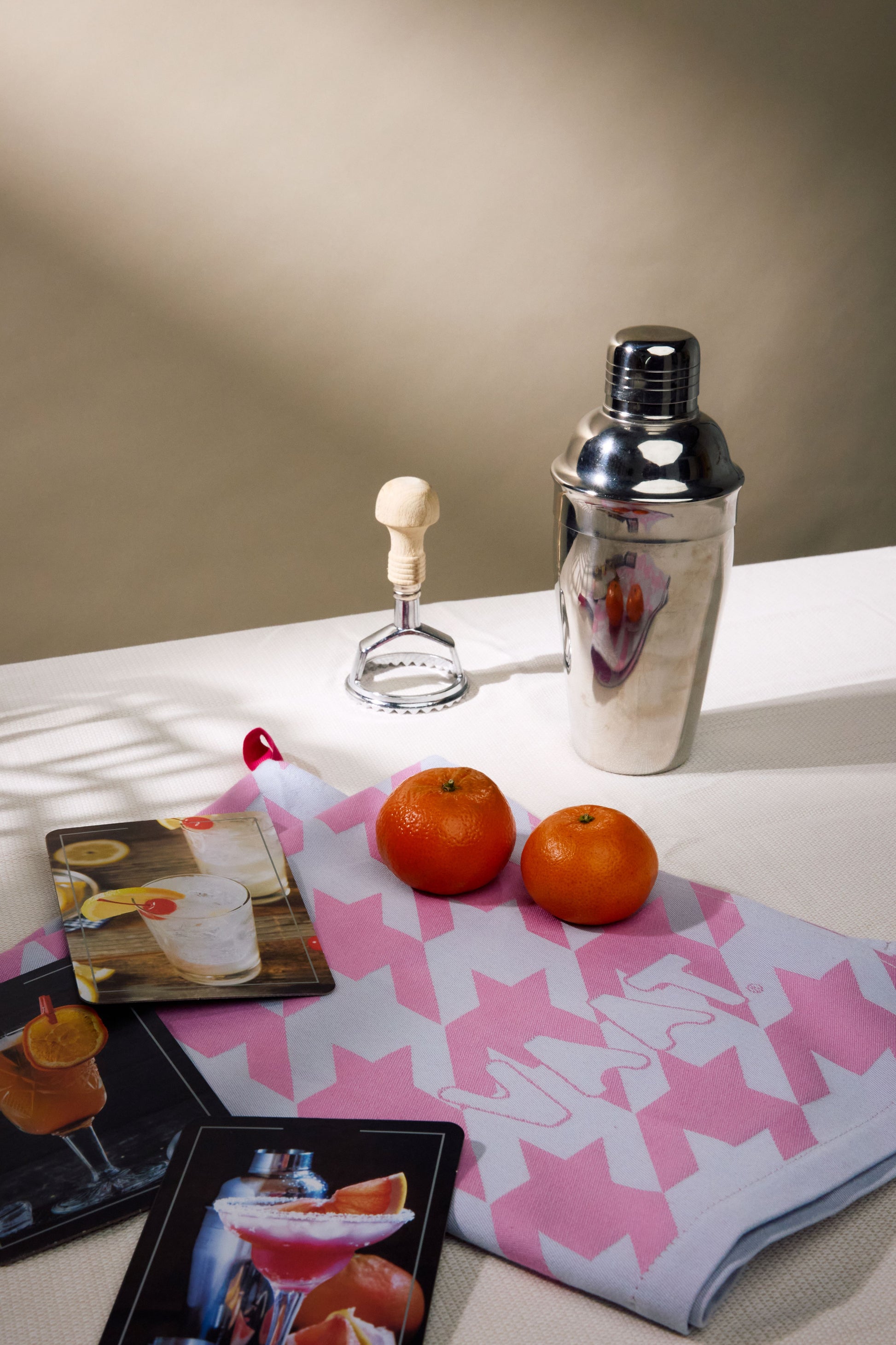 The tea towel is 50 x70 cm. The loop for hanging the cloths is located in the middle of the long side, which also makes them hang stylishly. Of course they can simply be thrown in the washing machine. Conceived in Amsterdam, produced in Portugal.